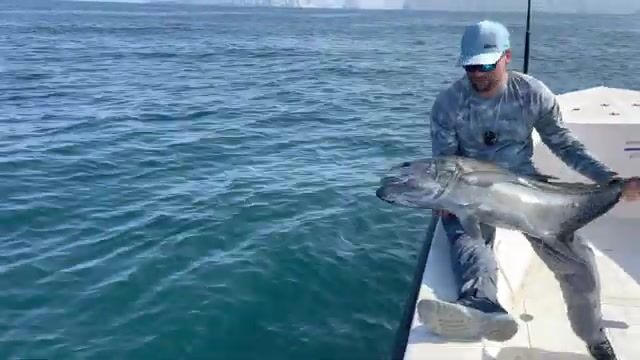 День в северном Омане сначала шел вдоль скал и под течение, где мы больше ждали поклевку на поппер, а рыба отвечала джигом. Потом уже стало ясно, что рабочая схема здесь не в гадании, а в постоянной смене точки и терпении до самого конца. Рыбалка в Омане на таком севере тяжелая, но GT под сорок в конце дня объясняет, зачем весь этот ход по камню и воде.