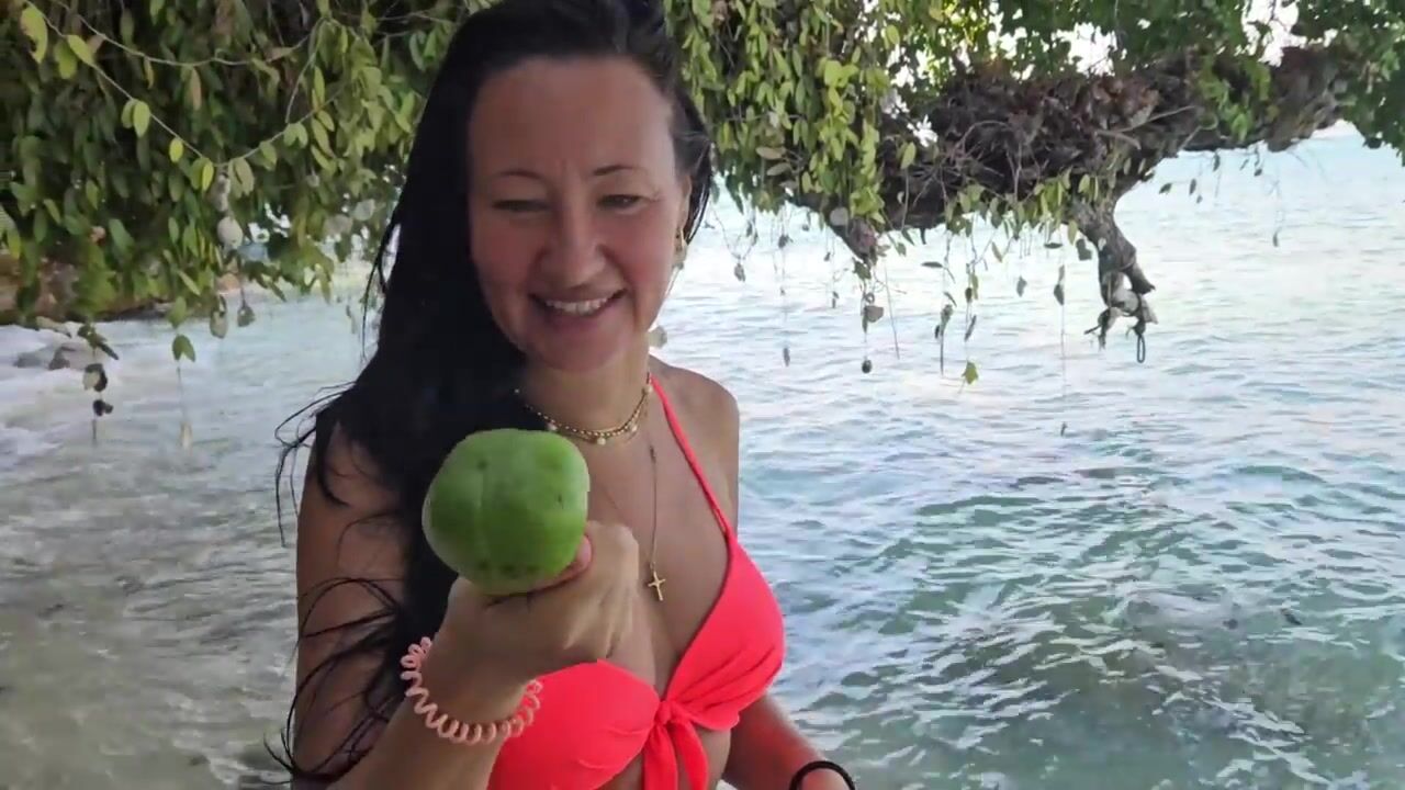 Утро: Пак зовёт, берём воду и бананы на станции, на лодочной показывают термоконтейнеры и суда. Идём к острову, пляж красивый, прилив большой. Днём остаёмся на острове одни, Пак уходит. Шутим, что если застрянем, будем жить на кокосах. Ищем съедобные фрукты/овощи, попадается коралл в форме стрелы, пробуем открыть. Рыбок вокруг много, их тут подкармливают, ловить их нельзя. С кальмарами не складывается: вода мутная, приманку не видят. Видим как другой рыбак берёт крупную рыбу, у нас тишина. Вечером снимаем закат и рыбацкую деревню. День закрываем местом с разливным пивом и пиццей, на удачу в следующий раз.