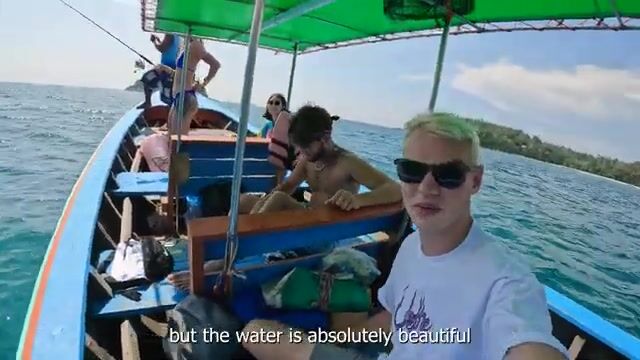 На второй постановке берег уже с каменной насыпью, вода прозрачная, дно видно с борта. Удочки в руках, шутки про ужин и голод, была потяжка "что-то есть", но по рыбе конкретики мало: вид, вес, глубину, модели снастей и приманки не озвучивают. Потом лезут в воду, под лодкой кораллы и мелкая морская жизнь; перед выходом я бы отдельно спросил, сколько времени реально ловят и когда программу переводят на снорклинг.
