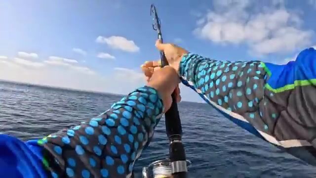 Первый удар пришёл почти сразу, но рыба ушла через короткую борьбу. Рыбалка в Омане здесь из Дофара, на лодке Green Anglers: катер спустили с трейлера, вышли в спокойное открытое море и начали искать движение дельфинов с тунцом. Цель держали крупную - yellowfin около 60 kg, поэтому в ход пошли попперы, topwater и тяжелый комплект Shimano Stella SW14000.