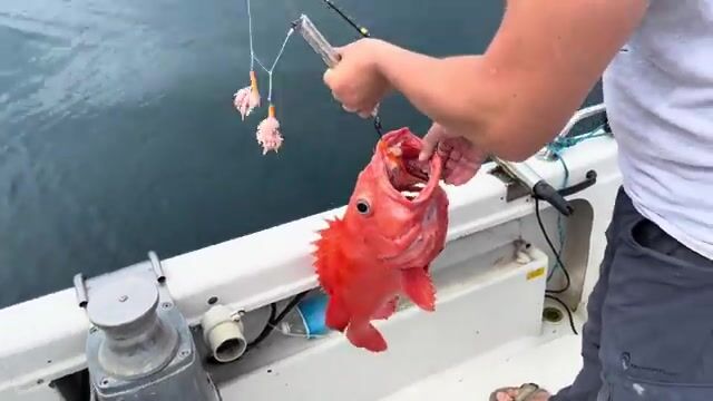 За окунем отошли глубже: на наживку пустили кишки трески, подъем с глубины шел уже через электрокатушку. По снастям все просто - пилькер, катушка, шнур и запас времени на вываживание. Если собираться на такой тур, я бы заранее спросил у Вити точку, сколько идти от Петропавловска, какая глубина планируется и кто помогает с электрокатушкой, если снова ставят лодку почти на 400 м.