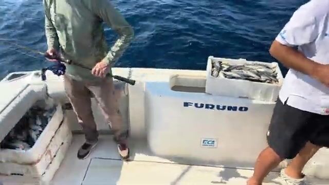 Живца потом поднимали уже с 200 метров джиговой катушкой, руки к этому моменту наливало так, что говорить было тяжело. Третья рыба тоже села, но день в итоге закрылся на одной рыбе в лодке и двух сходах по соединению шнура с флюром. По их оценке этот тунец тянул на 250-300 кг, и я бы перед следующим выходом первым делом перевязал этот узел и еще раз проверил, на каком цвете шнура реально начинается слой 30-40 м.