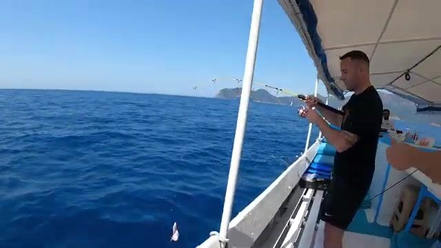 Живая креветка тут сработала лучше всего. Сначала на лодке вышли в море и встали примерно на 50-60 м по морскому лещу: леска, крючок и креветка, первая рыба сразу давит вниз, потом был и двойной удар. Морскую воду сначала проверили, а уже потом сместились дальше.