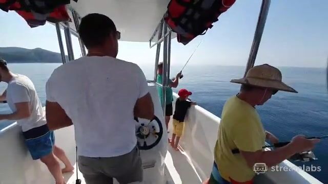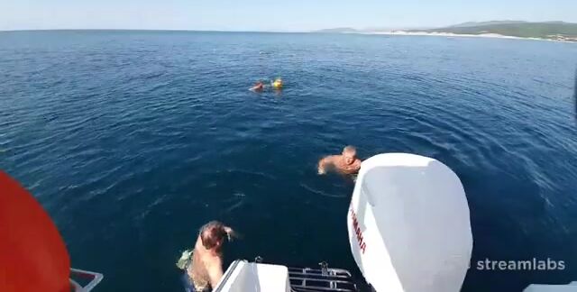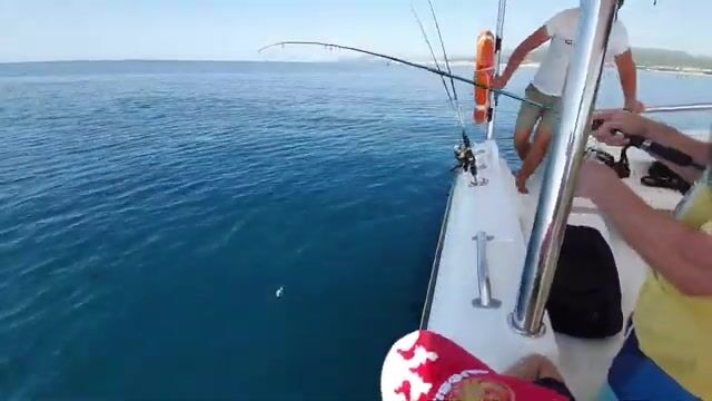 День здесь получился смешанный, не только под удочку: прошли вдоль берега, мимо устричной фермы, рядом крутились дельфины, потом часть людей уже полезла в воду. На борту отдельно предупреждали про дракона и про крючки среди мидий, так что руками и снастью тут лучше не суетиться. Я бы перед таким выходом сразу спрашивал, сколько времени катер реально стоит на рыбе и дают ли спокойно доработать самодуром, а не только пройтись по морю и обратно.