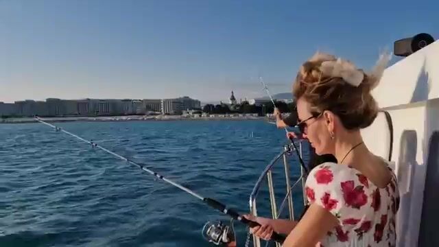 По рыбе день здесь короткий и честный: Настя за несколько проходов подняла несколько штук, одна сошла, потом пошла мелкая ставридка, часть улова позже жарили прямо на яхте. Рыбалка в Сочи на море в таком формате больше про вечерний выход с борта, чем про долгую постановку по точке. Перед бронью я бы сразу спросил, сколько реально дают времени под рамку и на какую рыбу идут именно в этот вечер, потому что закат, дельфины и прогулочная часть здесь занимают не меньше самой ловли.