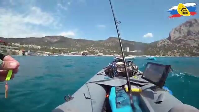 Шестиграммовый булер с подсадкой включил рыбу быстрее, чем я привык к Фишкаяку. Это был первый нормальный морской выход на каяке, так что сначала просто ловил ритм по волне и проверял, как держится лодка у скал. Рыбалка в Черном море в таком формате оказалась не прогулкой: эхолот впервые работал по морю, под лодкой сразу показывал рыбу, и после первых ударчиков пошла ставридка. Потом влетел морской карась, который на такой снасти уже бился как надо.