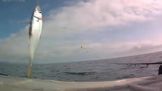 Потом вставали на якорь и добирали редкую ставриду вперемешку с луфарем. Крепление камеры к тому времени уже отломилось, часть дня снимал с руки, так что на лодке и без того было тесно. Рыбы немного, зато схема здесь сразу видна: пару хвостов снял, дальше пусто, и снова надо сниматься с точки. Кто сейчас ходит у Алушты с лодки, подскажите - по луфарю еще есть смысл стоять на якоре, или лучше все время проверять новые проходы?