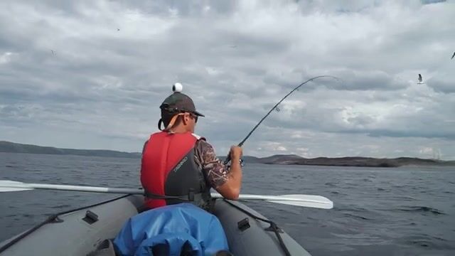 На следующем выходе по рыбе стало понятнее: кроме трески попадалась сайда, и даже небольшая рыба на такой воде тянет совсем иначе. В середине дня рядом показалась касатка, и после этого я уже чаще смотрел по сторонам, чем на шнур. Кто ходит у Териберки на байдарке, подскажите - по железу на ветер лучше сразу держать запас по весу или здесь чаще решает угол проводки?