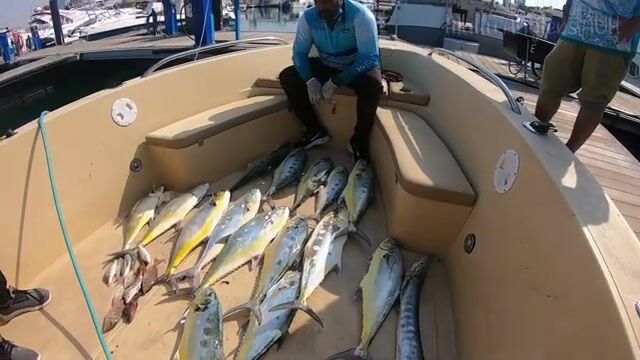| На борту | Несколько рыболовов, активная работа с носа и борта и рыба на палубе к концу выхода |