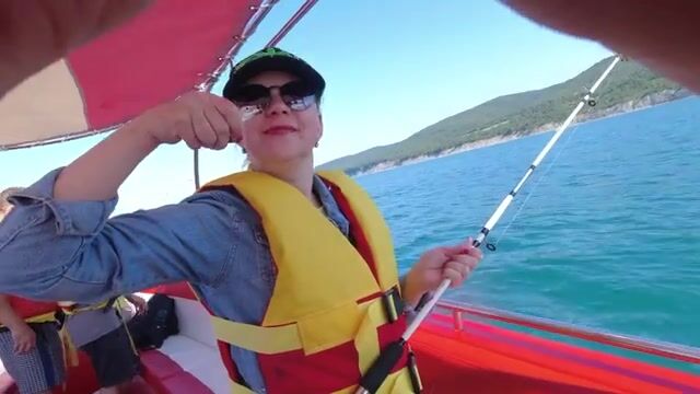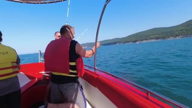 Зазывала на пляже в Архипо-Осиповке и запускает весь этот выход, потом идет пересадка на катер и короткий выход в море. Это морская рыбалка в Геленджике не про дальний поиск, а про туристический двухчасовой формат: снасть дают на борту, показывают как опустить ее до дна, коротко поддернуть и поднять. По ролику и тегам подтверждена ставрида, а в 2023 такой выход стоил 2000 для рыбака и 1000 для сопровождающего.