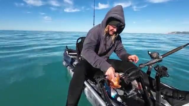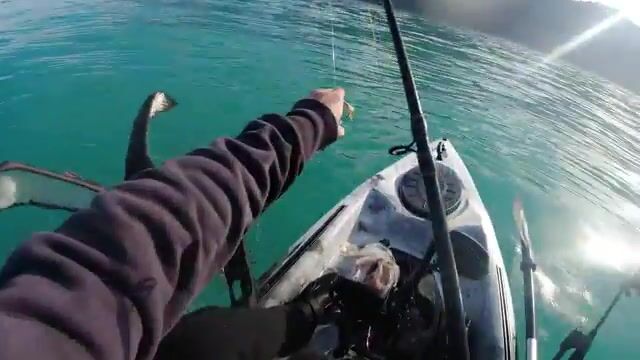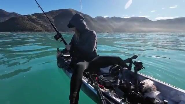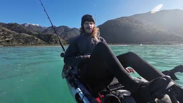 Сначала здесь день строится не вокруг берега, а вокруг подводной траншеи, куда каяк уходит на deep-drop по открытой воде. Рыбалка в Новой Зеландии в этом ролике показана как короткий морской выход с каяка: дальний сброс в глубину, рабочая палуба прямо под ногами и несколько реальных кадров с рыбой на борту без чартерной упаковки.