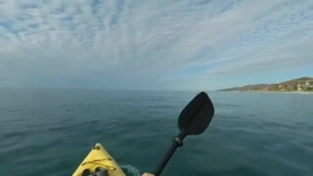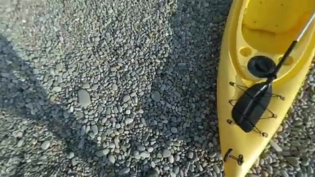 | Как выглядит день | Жёлтый каяк, выход с берега, ровная вода и спокойный рабочий ритм уже на открытом море |