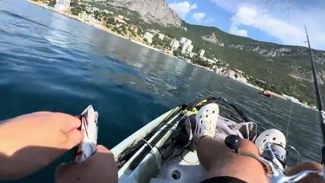 Пеламида здесь включается не на одном случайном проходе, а на понятной морской схеме с каяка. Live-source прямо подтверждает Крым, Чёрное море, kayak Jackson, троллинг, пилькер и саму попытку разобрать, как эту рыбу искать и как по ней работать летом. Рыбалка в Черном море в таком ролике держится не на туристической прогулке, а на рабочем sea-kayak дне: выход на воду, поиск по ходу, первые поимки и спокойная проверка двух разных подходов по пеламиде.