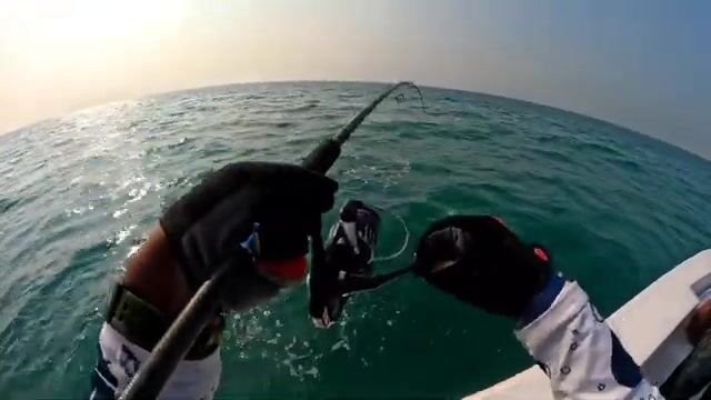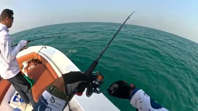 Кобия здесь появляется не в рассказах после выхода, а прямо у борта, когда лодка уже держит рыбу на короткой дистанции и удилище не отпускает ни на секунду. Рыбалка в Рас-эль-Хайме в этом ролике собрана вокруг одного понятного эпизода: boat-day, сильный контакт и тяжелая рыба, которая сразу забирает на себя весь темп выхода.