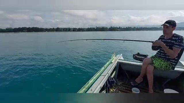 Ролик держится не на счете по рыбе, а на самой фактуре такого дня. Каменистый старт, маленькая лодка, ровная поверхность Черного моря и несколько рабочих моментов с удилищем дают понятную картину, как выглядит морская рыбалка в Абхазии, когда едут не за шоу, а за спокойным выходом в море.