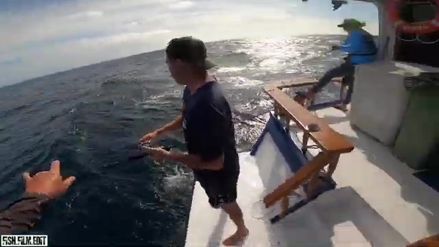 | Контекст | Сначала собирают снасти и входят в ритм поездки, затем появляется крупная рыба на палубе |