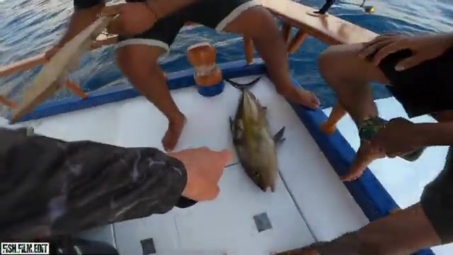 Открытый source прямо говорит, что это первый эпизод серии и warm up после долгого перелета, а в кадре подтверждаются рабочая лодка, джиговый темп, несколько подъемов рыбы и один особенно сильный палубный момент с крупным трофеем у борта. Точный атолл, вид рыбы и глубины ролик безопасно не фиксирует, поэтому в карточке я не стал притягивать dogtooth, amberjack или yellowfin только по общим тегам и чужим ожиданиям.