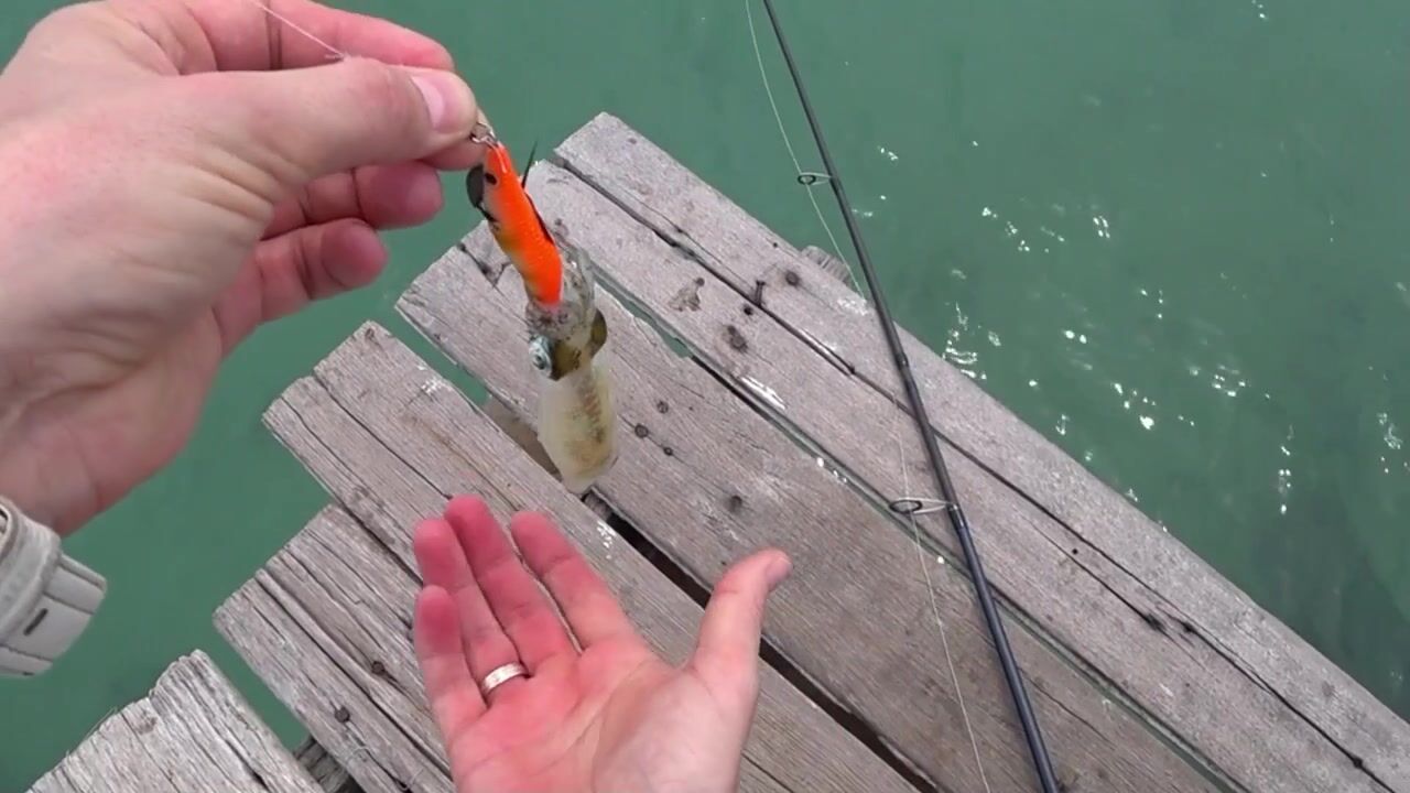 Переехали на рыбацкий пирс. Там местные ловят кальмара на эги. Взял у них пару штук, забросил — и через минуту клюнул малыш, первый кальмар! Пошли эмоции. Дальше — барракуды не было, зато фугу атакует приманку. Ярослав показал местные фишки — сказал, при отливе клев лучше, и показал точки по рифу. Купили в магазине пару новых приманок, запас креветок, посмотрели цены — дешево, выбор странный, много китайских джигов.