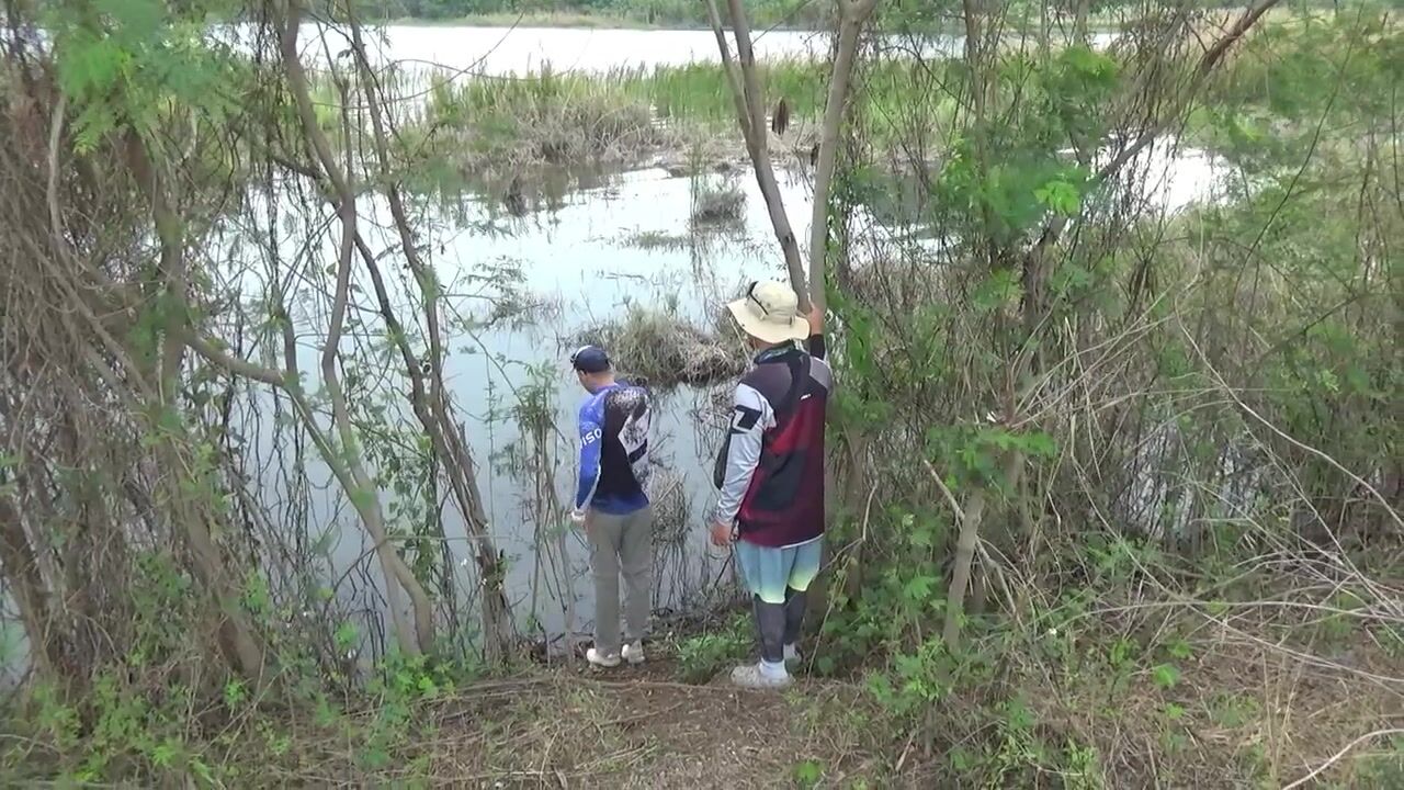 Через два часа всего два выхода, оба холостые. Сторону поменяли — та же история. Много сетей, местные ловят на живца. Плюс змеи и ящерицы по берегу, ходить стрёмно. Под конец всё-таки поймали маленького змееголова, сантиметров 25, но хоть не ноль. Упорная рыба, тянет даже такая мелочь прилично. Осмотрели — кожа плотная, пасть широкая, видно, что хищник.